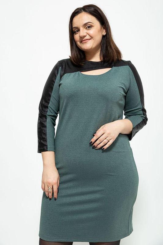 Коротка сукня з рукавом 3/4 і вставками зі шкірзаму колір зелений 102r082