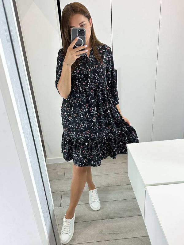 Платье🫶🏼 Арт 754 Тканина софт Цвет белый, черный, лавандовый Размер 42-44,46-48,50-52 Платье свободного кроя, с карманами, рукав 3/4 (застегивается на пуговицу)