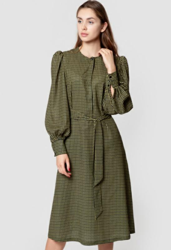 Сукня на гудзиках спереду, з поясом і об'ємними рукавами.