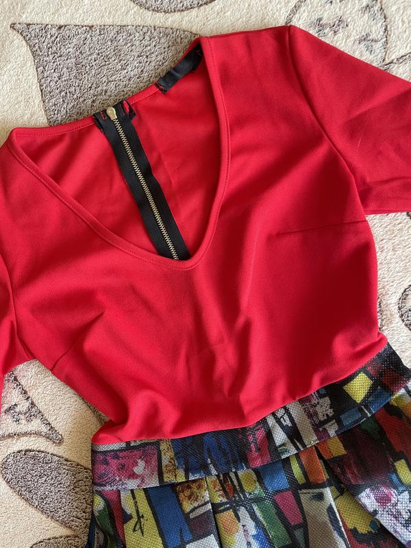 Красное платье и плотной юбкой, отлично садится по фигуре