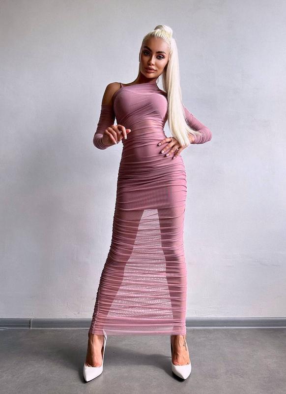 Витончена сукня міді з драпіруванням, плаття з сіткою