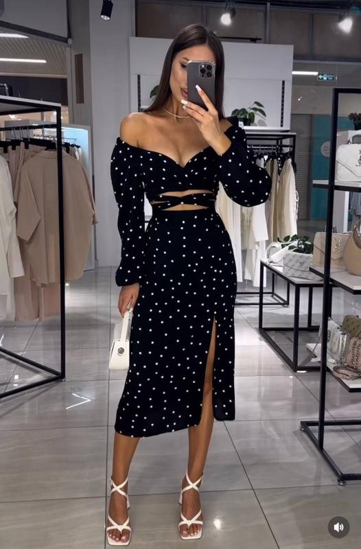 Новинка Костюм Мод I£ND 303 Ціна 650грн ❣ Розміри : 42-44, 46-48 Тканина : софт Колір: чорний , чорний в горох Неперевершений костюм двійка (топ+спідниця) , який підкорить серце кожної модниці Пояс спідниці сзаду на резиночці , що гарантує ідеальну посадку ! Сбоку на спідниці змійка !