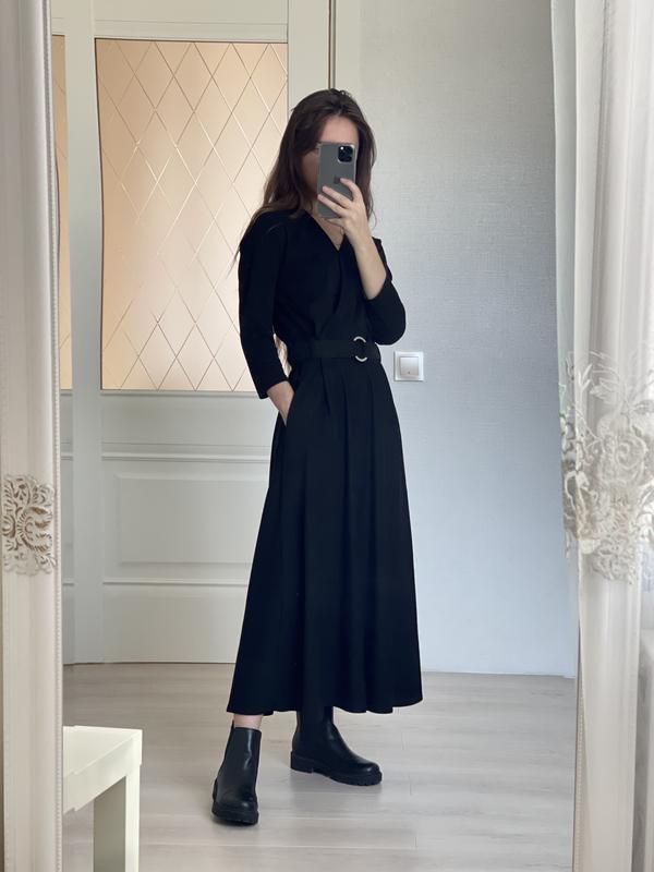 Чорне плаття довжини міді у розмірі S від бренду Reserved, тканина приємна на дотик під бархат. Плаття в ідеальному стані, одягнене на модель розміру Xs і ростом 160