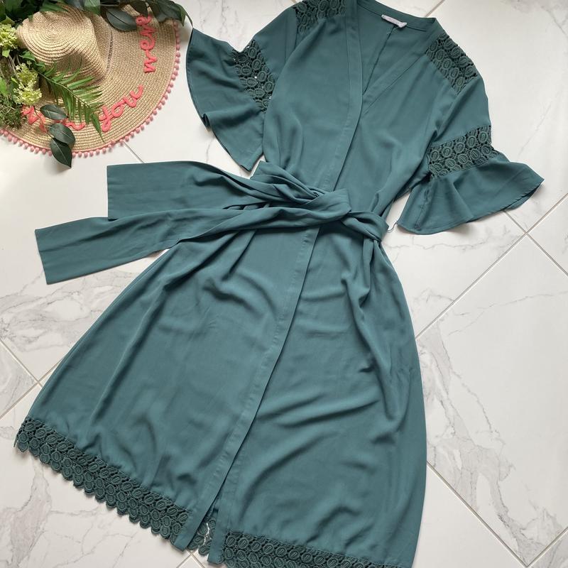 Сукня кольору морської хвилі стан ідеальний, щільний поліестер, має кишені р 18 хл ххл -довжина 117, рук 29 -нОг 56-57 -нОт 54-55 -нОб вільно 60 ФОТО НА ТІЛІ НЕМАЄ