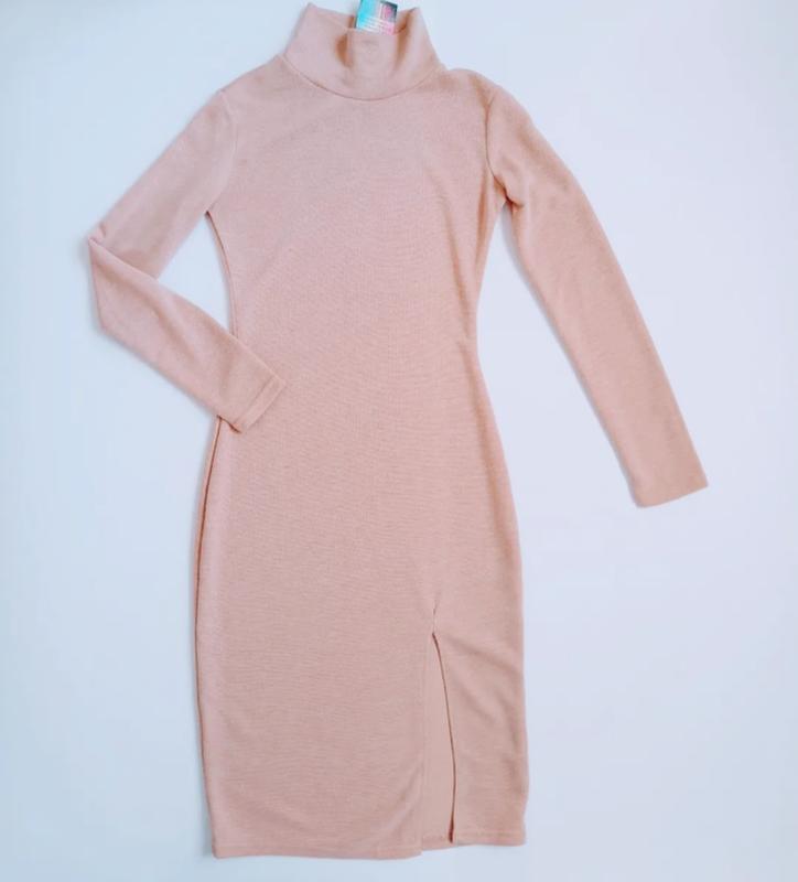 Нове трикотажне плаття гарного бежевого кольору. М'яке і дуже приємне до тіла. Тонке, але тепле. Українське виробництво. Якість відмінна. Розмір S. Довжина сукні - 102 см, Довжина від пахви до пахви - 41 см Довжина рукава - 58 см