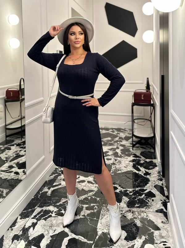 хлНОВИНКА 😍 Сукня в'язана з розрізом Арт. 41566, 41581, 41571, 41575, 41584, 41573 ▪️ матеріал: вязка ▪️ колір: бежевий, темно-синій, синій, сірий, чорний, бордовий ▪️ розміри: 48-50, 52-54, 56-58, 60-62 48-50: (ОГ-103см, Довжина сукні-120см) 52-54: (ОГ-113см, Довжина сукні-120см) 56-58: (ОГ-123см, Довжина сукні-120см) 60-62: (ОГ-133см, Довжина сукні-120см)