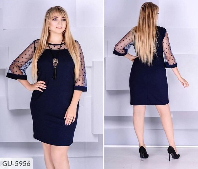 соСукня GU-5957 мод80506 Размиры: 50, 52, 54, 56, 58, 60 Ткань: креп дайвинг + фатин горошек флок на Евро сетке + кулон