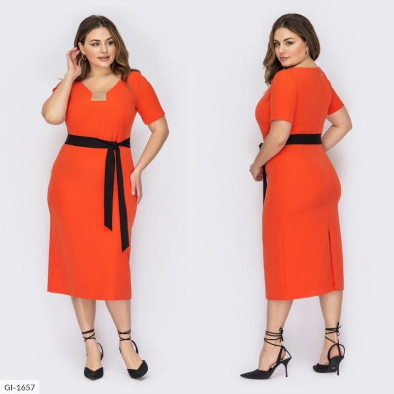 Сукня GI-1655 модель : sfdr - 1047 Розмiри: 48, 50, 52, 54, 56, 58 Полуприлегающий силует Тканина: креп-стрейч Знімний пояс-пояс з крепу чорного кольору Потайна блискавка по спинці Оздоблення зі шкіри бежевого кольору Атласна обробка внутрішніх швів Довжина виробу від 1м 08 - 1м 10 см см по центру спинки Довжина рукава 45 см Довжина виробу пропорційно збільшується від розміру. со