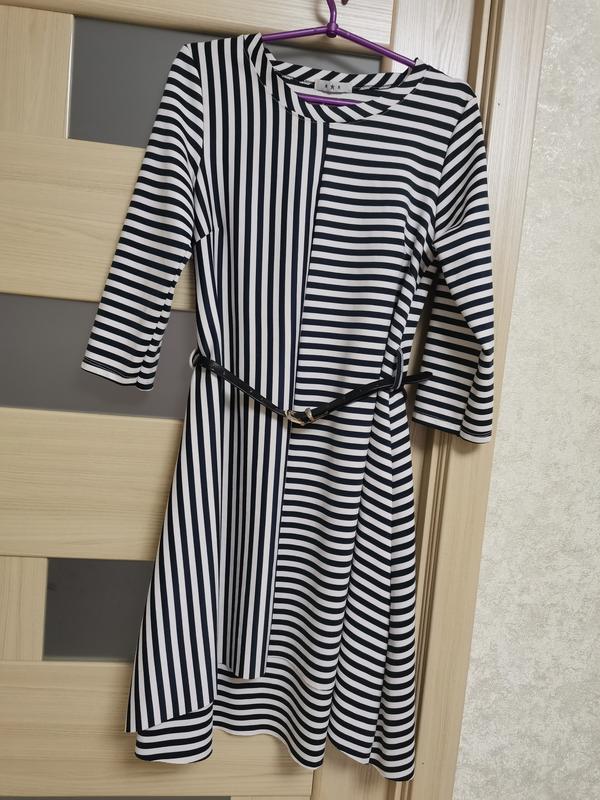 В ідеальному стані Плаття в темно-синю смужку Продається без ременя Довжина переду 90 см Довжина ззаду 100 см У талії вільно під ремінець НОГ 48-49 см Довжина рукава 46 см