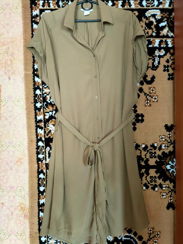Дуже гарне плаття -рубашка,стан нової речі 5 з 5,не одягалась,ціна шара!!!Відомої фірми H&M.Іде вільного рівного фасону,на пишні форми,скриє недоліки і підчеркне гарні форми , дуже приємний багатий колір, спокійний такий😍,йде з поясочком, тканина не тонка,добре гладиться,гарно буде сидіти по фігурі 😍 Розмір підійде на 52-54. Заміри:півобхват грудей,талії і низ буде однаковий,так як рівного фасону-60, Довжина від плеча -105 см,по боках трохи закруглене,рукавички йде приспущений.