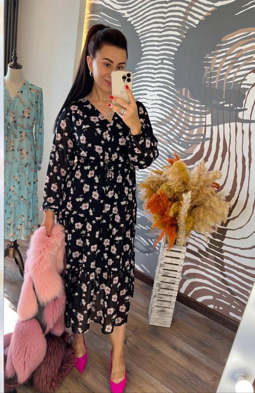 ТОВАР КЛАСУ ЛЮКС🌸🍃🌸🌸 НАДЗВИЧАЙНО КРАСИВА, ЛЕГКА І КОМФОРТНА СУКНЯ З КРЕП ШИФОНУ ВИСОКОЇ ЯКОСТІ З ЧУДОВИМ ВІЗЕРУНКОМ , НЕ ЗАЛИШИТЬ БАЙДУЖОЮ ЖОДНУ ЦІНИТЕЛЬКУ ГАРНОГО ОДЯГУ СУКНЯ ПРИТАЛЕНОГО КРОЮ З ТОНКИМ ПОТАЄМНИМ ПОЯСОМ ПРЕКРАСНО ПІДКРЕСЛИТЬ ТОНКУ ТАЛІЮ, ВЕРХНЯ ЧАСТИНА НА ЗАПАХ ТА ДОВГІ ВИТОНЧЕНІ РУКАВА - ЛІХТАРИКИ ДОДАДУТЬ ВАШОМУ ОБРАЗУ ЖІНОЧНОСТІ, ЗАВЕРШУЄ ОБРАЗ ВІЛЬНА СПІДНИЦЯ З ПІД'ЮБНИКОМ ДОВЖИНА 120 СМ НАПІВОБХВАТ ГРУДЕЙ 54. СМ РОЗМІР ЄДИНИЙ 44-46