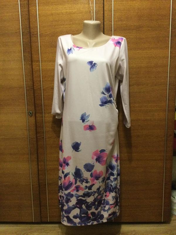 Тяжка тканина. На підкладці. До половини плаття на спині замочок. ПОГ- 52 см. ПОТ - 47 см. ПОБ- 57 см. Рукав- 50 см. Плече-7 см. Плечі- 42 см. Шикарне. Мій прольот.