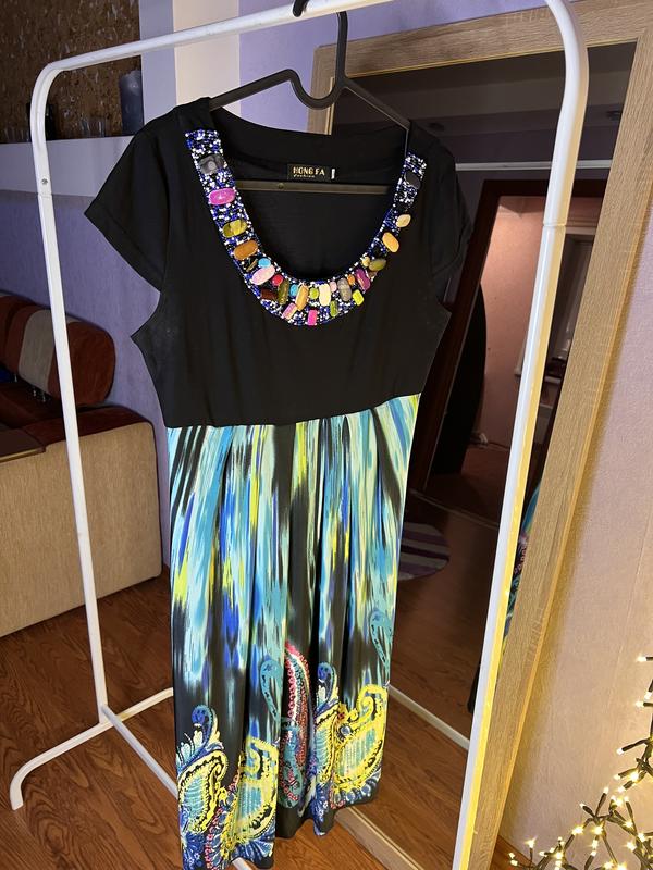 Сукня плаття чорний бірюзий колір з камнями розмір 42 m
