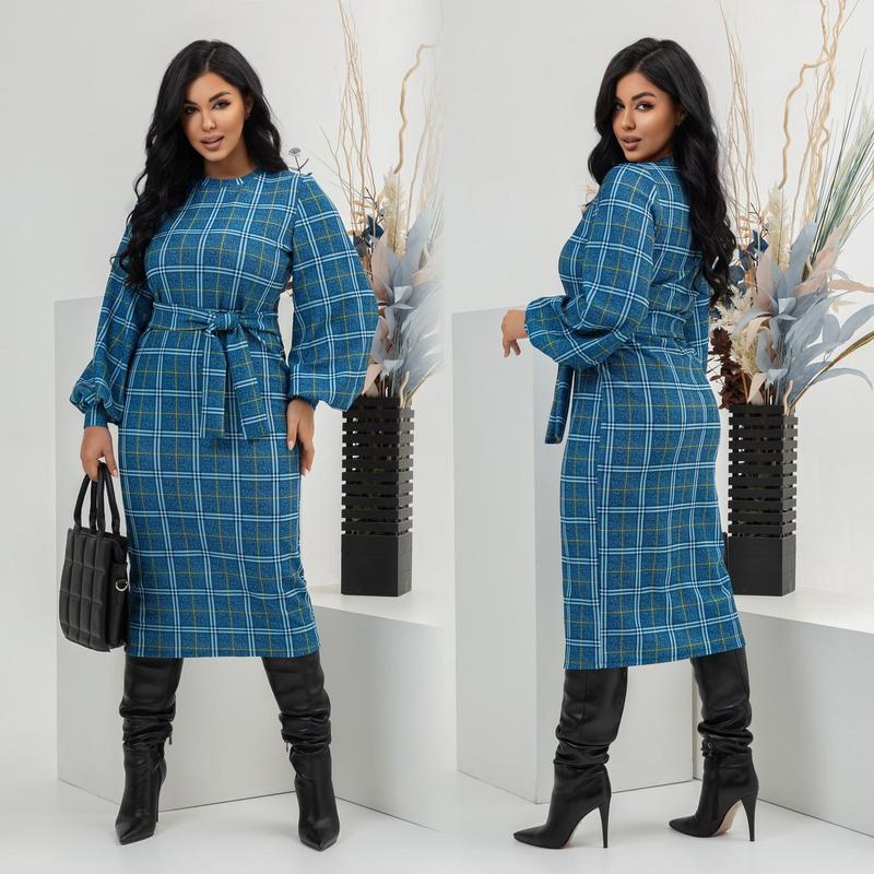 Сукня арт. david. 7400-1 Розмір: 46-48; 50-52; 54-56; 58-60 Тканина: трикотаж Довжина сукні: 120 см. Довжина рукава: 72 см. Гарна розтяжність. Стильна сукня приталенного покрою, з широкими рукавами на манжеті. Пояс з основної тканини йде в комплекті. Тканина приємна на дотик, високої якості, не кошлатиться, приємна на дотик.