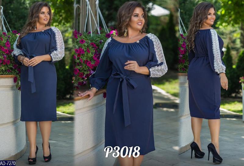 хл Сукня AD-7270 Размиры: 48-50 сукня брошка №1094. цвет: Бирюза, Электрик, красный, синий, бутылка. Тканина: креп-костюмка. длина изделия 105 см. длина рукава 55 см. брошка в комплекті. элегантное платье, свободного силуэта и вставками из кружева на рукавах. ♥️___________♥️___________♥️