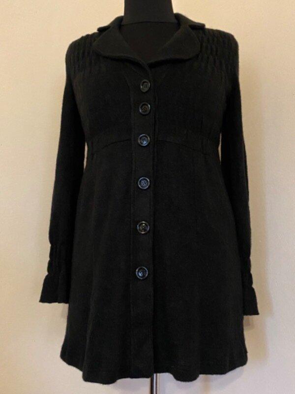 Класна річ з тонкої шерсті з підкладкою, придбано в Іспанї дорого, та ярлик зі складниками зрізано. Довжина- 95см, плечі - 40см, рукав від плеча - 64,5см, пог - 47см до 60см тягнеться в півоб'ємі за рахунок резинок, пот - 40см до 54см тягнеться, поб - 54см.