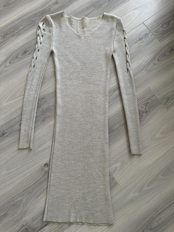 Платье по фигуре длины миди, подойдет на размер S/M, растягивается под ваш тип фигуры, могу отправить дополнительные фото