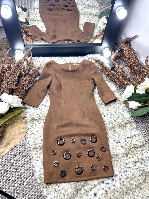Дуже гарна сукня, з замшу. Гарно тягнеться. Нова. Сзаду на замочку.