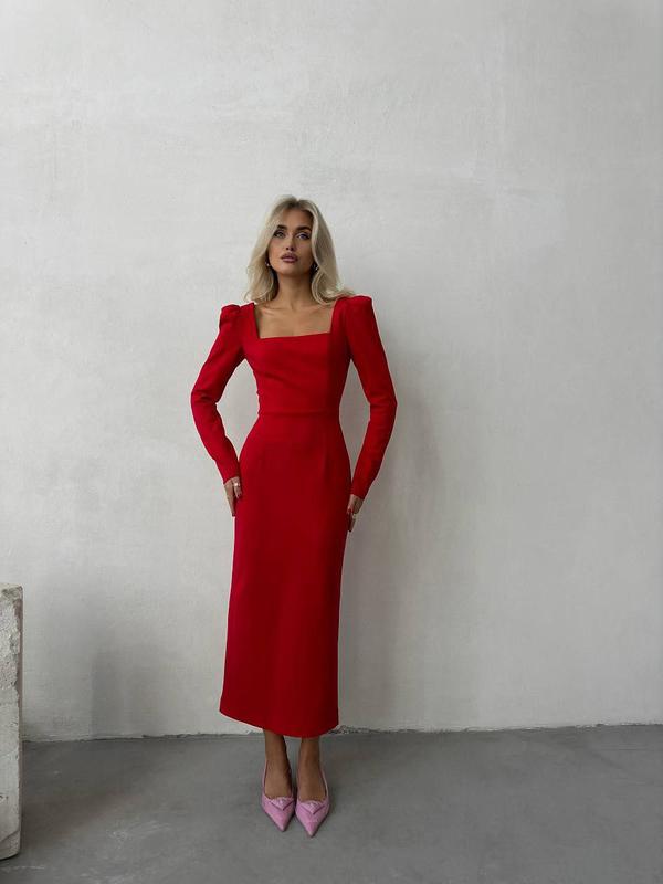 Женское платье длины миди Модель 5471/31 Размерный ряд S,M,L,XL Тканина костюмна Застегивается на молнию Цвета красный и черный Цена: 870 грн только полная оплата