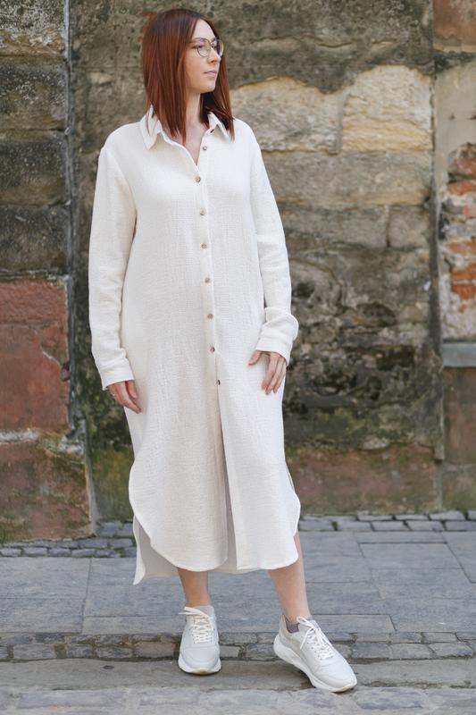 Лляна жіноча сукня з вафельною текстурою vil'ni саламанка білий 48