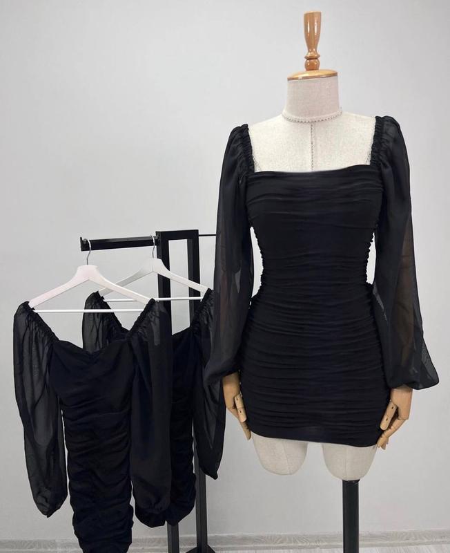 Сукня❤️🔥❄️ ▪️Модель 045 ▫️Тканина: щільний мікродайвинг + сітка ▪️Колір : чорний ▫️Розмір : 42/44 46/48 🌿 Приталена модель з об’ємними рукавами зі щільної тканини, яка моделює фігуру. Сукня на зав’язках побокам, завдяки чому регулюється довжина від міні до міді . Та сама сукня, яка стане безпрограшним варіантом для будь-якого випадку 🌿