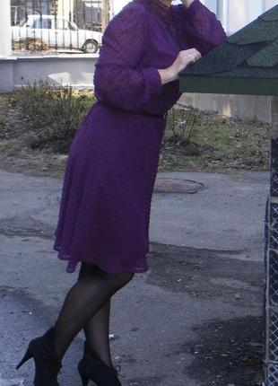 Сукня яскраво фіолетового кольору, дуже гарна, є підклад. На таліі ззаду вшита резинка. Довжина-100. пог-54, пот-50, поб-70.