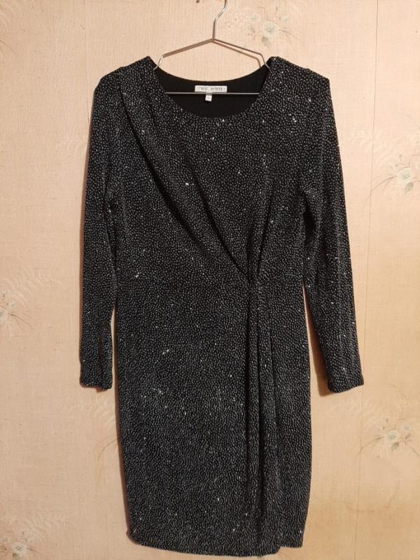 Сукня блискуча, гарно сідає по фігурці, розмір Uk 14: ПОГ - 43 та добре тягнеться до 55см, ПОТ - 38 у спокійному стані, ПОБ - 48см + тягнеться, рукав - 55см, довжина - 90см, є підкладка. Стан нової речі!