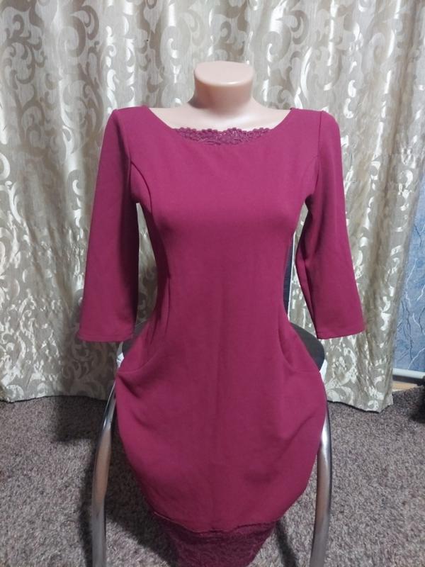 Сукня яскравого кольору. Стан ідеальний. Ззаді є декілька затяжок (фото є), їх не помітно. знизу гіпюрна сітка. Ціла, не сатається. Розмір 38 М, або наш 44. Дивіться заміри. Довжина 86см, груди - 40см, бедра - 45см, рукав - 40см, від підмишки 25см. Тканина трішки тягнеться. Матеріал поліестер.