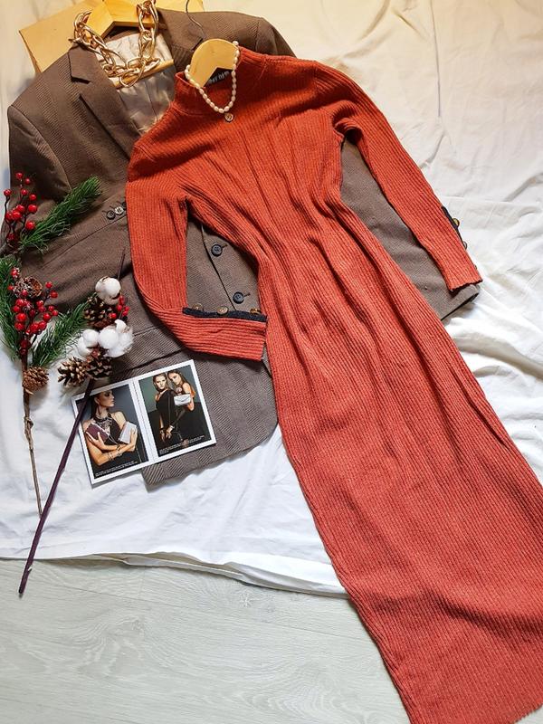Сукня жіноча міді сукня - светр трикотажна довга в рубчик