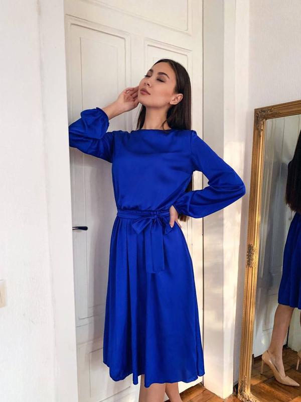 Сукня шовк з поясом міді синя червона бордо