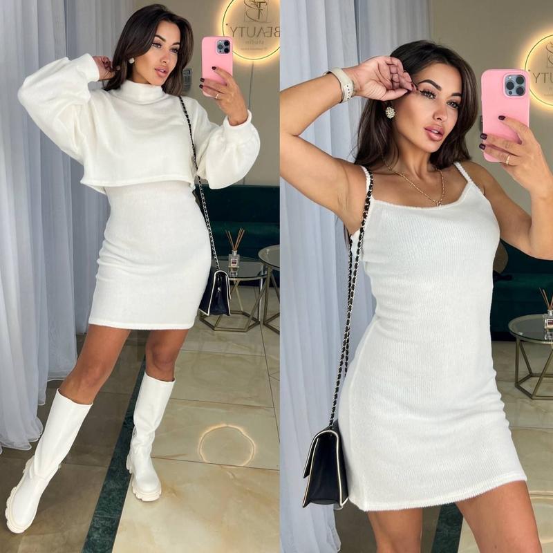 Сукня+светр Модель: 022 Розміри: 42-46. Тканина: Якісна Ангора рубчик Туреччина Кольори: Чорний, Молоко, Кемел. Сукня на бретелях Ціна630 грн