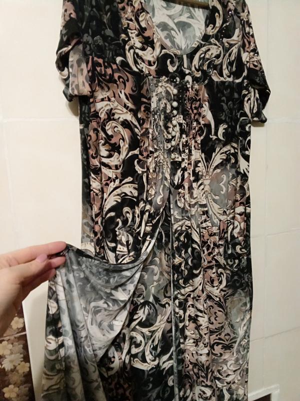 в ідеалі, із-за принта не можу показати модель,( модель цікава) малюнок на останньому фото .заміри: пог-55, поб-58. довжина -104 передня частина подвійна імітація накидки.