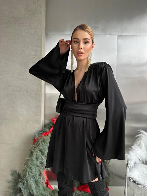 Цвет: красный, черный, бутилка Размеры: 42-44 и 44-46 Материал: шелк армани Идеальное платье из атласной ткани с декольте и воздушными рукавами