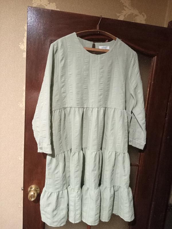 Продам сукню в стилі оверсайз коліру м'ята.сукня без підкладки.легко переться і не мнеться. груди 110 см стегна 150 см довжина 96 см рукав 53 см