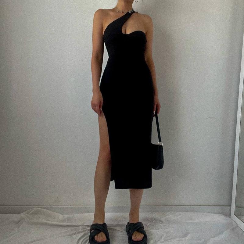 Асиметрична сукня з розрізом – позачасова класика🖤Ідеальна модель!🥰 • Матеріал: щільний трикотаж стрейч • Ліф з поролоновими вставками • Розміри: S (ОГ 74-88 см, ОБ 83-90 см, довжина від ліфу 95 см) М (ОГ 80-93 см, ОБ 90-99 см, довжина від ліфу 97 см)