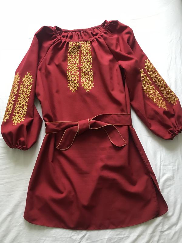 Плаття з вишивкою, ідеальний стан. Довжина 89 см, ПОГ 57 см, прямий крій, довжина рукава від горловини 67 див. Колір плаття, як на першому фото.