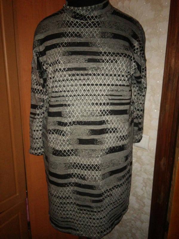 ткань теплая мякоть на флисе средней плотности тянется по фигуре, не мнется С лица как в "язкая", выворите гладкий серый флис длина 105см рукав от горловины 70см ПОГ 66-67см ПОБедра 67-68-см +++в спок. горловина двойная высотой 5см асимметричная (с разрезом, выкладывается по-разному...) Дужает комфортное теплое и приятное к телу, с карманом. Скрывает за счет принта-ЗД геометрия -дужуже актуально и всегда в моде состав 40%вискоза40%модал12%шерсть8%эластан
