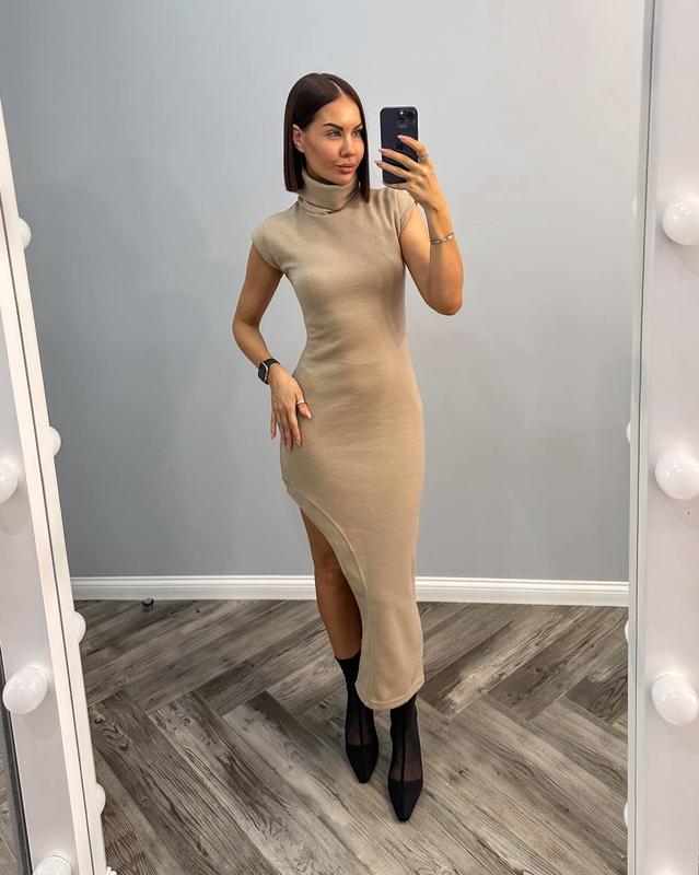 Елегантна сукня Модель 5495 Розмір 42-44,46-48 Тканина Ангора двостороння Колір чорний , мокко