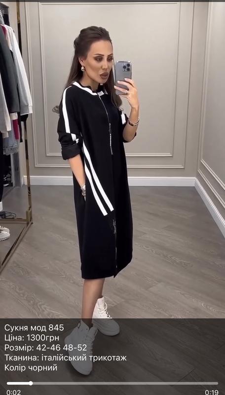 Сукня мод 845 Ціна: 1300грн Розмір: 42-46 48-52 Тканина: італійський трикотаж Колір чорний