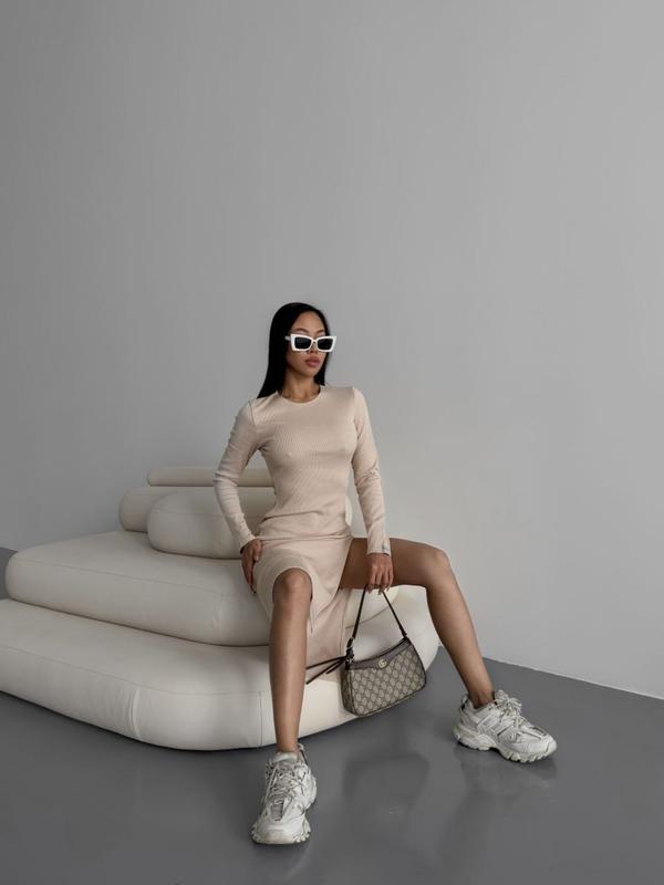 🎨3! шикарное женское платье миди бежевое бежевое бежевое рубчик миди женское платье