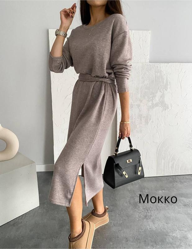 Новинка♥️ Сукня Мод in 327 Розміри : 42-44, 46-48 Тканина : двостороння Ангора Колір: беж , мокко, чорний Тепла та зручна сукня з розрізами на прохолодну погоду 🍂 Пояс йде в комплекті !