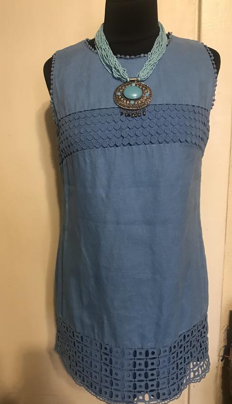 Шикарне льняне плаття з мереживом Next. На підкладці, розмір с м. По грудей 53/ по талія 50/ по бедра 56/ довжина 82.