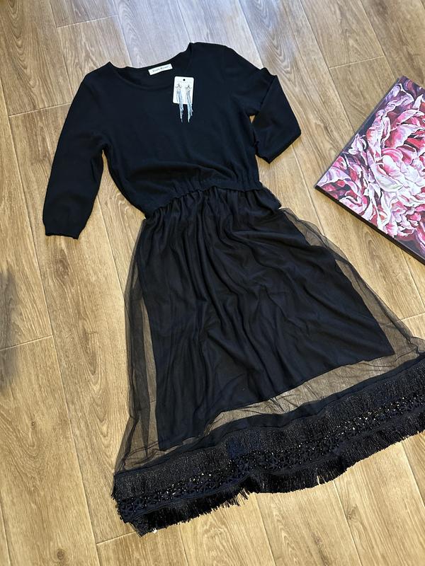 Красивое платье 🛍️ Одягалась один раз • Размер: L-XL • Рукава 3/4 💸 Цена: стоила 2200 грн, продаю за 900 грн Верх трикотаж Низ прозрачный на подкладке декорирован бисером и бахрамой
