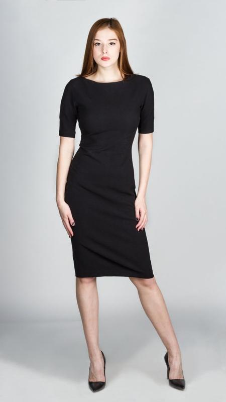 Класна сукня чорного кольору Стан ідеальний Розмір 48 (UK 12) Тканина середньої плотності Класно сідає по фігурі Ширина під пахвами 42 см Талія 39 см Стегна 46 см Плечі 40 см Рукав 26 см Довжина по спині 97 см Ширина по низу 47 см