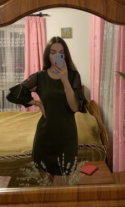 Симпатичне плаття 💚 з надзвичайно красивими рукавами, які придають вишуканості ❣️ Напівобхват талії - 42 см Напівобхват бедер - 49 см Довжина - 87 см Плаття доволі вільно виглядає на тілі 🥰