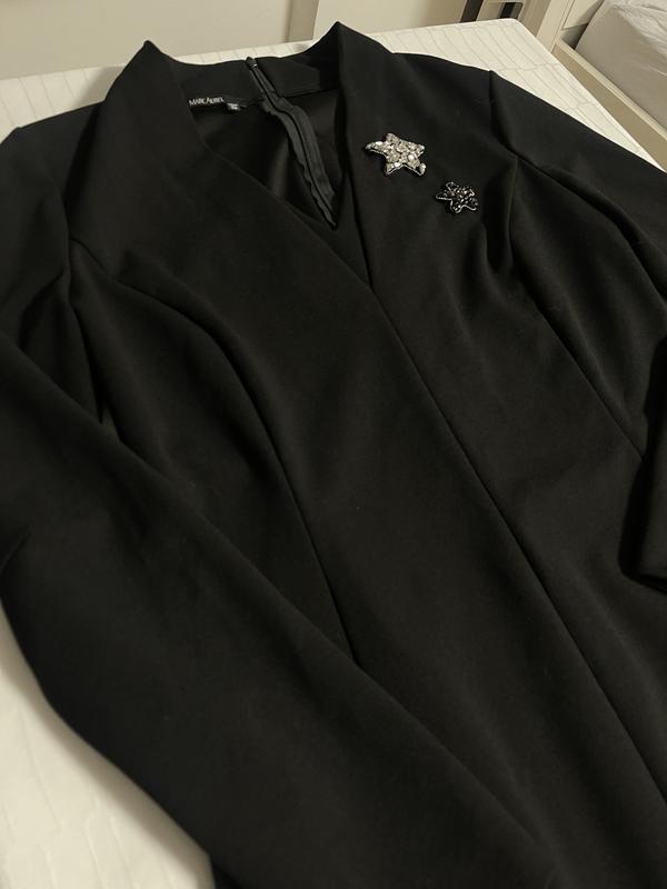 Сукня німецького люкс бренду Marc Aurel. Розмір 38. М Мірки: Довжина 100 Рукава 60 Пів обхват грудей 45 Талія 40 Бедра 46 Сукня тільки з хімчистки. Без дефектів, фурнітура ціла. Дві брошки у формі зірочки