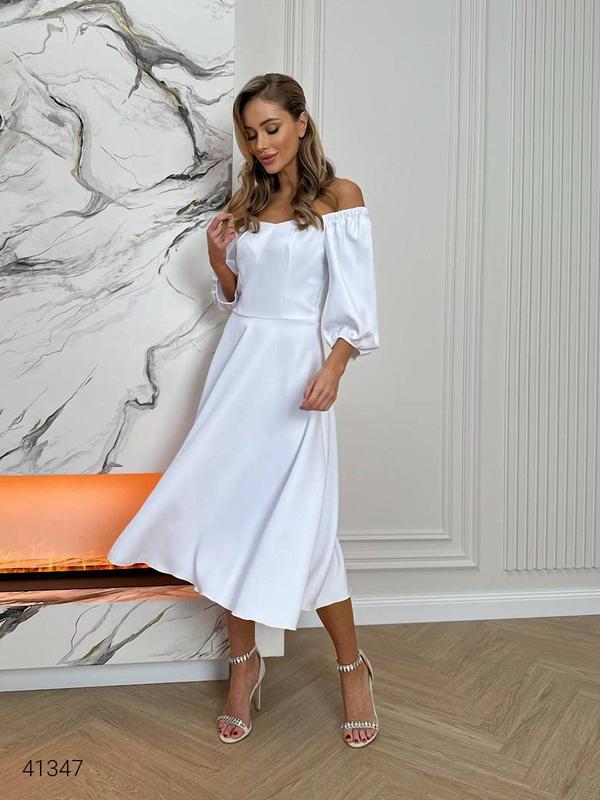 Платье длины миди ЦВЕТ: Белый МАТЕРІАЛ:костюмна тканина СЕЗОН:осень/ зима СТИЛЬ:полный ПРИМЕЧАНИЕ: на молнии О ТОВАР Платье длины миди. Застегивается на молнию, рукава на резинке. Ткань: костюмный трикотаж (приемная на ощупь). Ориентировочные замеры по готовому изделию: 42 (ОГ 84-88, ОТ 62-66, ОБ 90-94, длина 115, длина рукава 43), 44 (ОГ 88-92, ОТ 66-70, ОБ 94-98, длина 115, длина рукава 43), 46 (ОГ 92-96, ОТ 70-74, ОБ 98-102, длина 115, длина рукава 44), 48 (ОГ 96-100, ОТ 74-78, ОБ 102-106, длина 115, длина рукава 44) Размеры:42. 44. 46. 48
