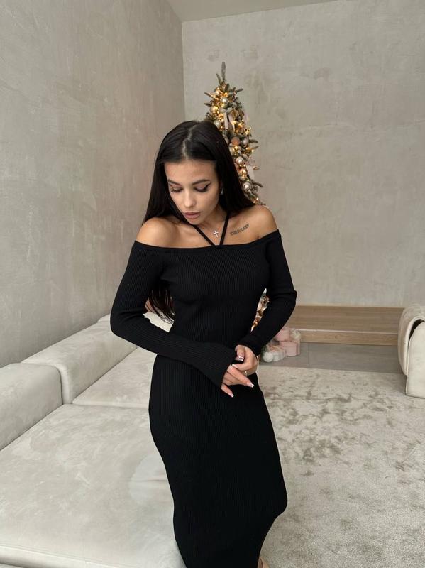 🎨 чорний, молоко! шикарна жіноча сукня міді рубчик чорна чорний черное женское платье мид...