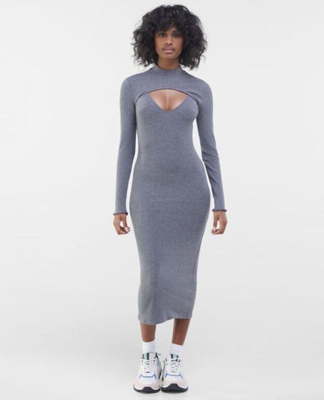 bershka Іспанія сукня 2 в 1, верх знімний, можна носити окремо сукню і окремо рукава сіре XS Хс: Довжина 115 Пог 26 Пот 25 Пос 32 Балеро плечі 32 Рукав 60