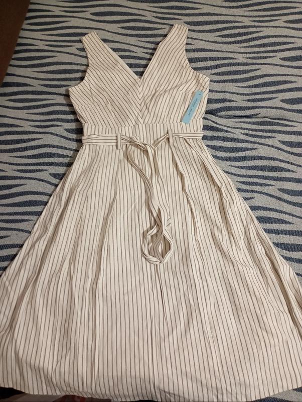 сукня з натурального матеріалу Пог 45-50 Пот (там де пояс на фото) 40, не тягнеться Поб вільно Довжина від плеча до низу 113 Тканина тягнеться тільки в грудях